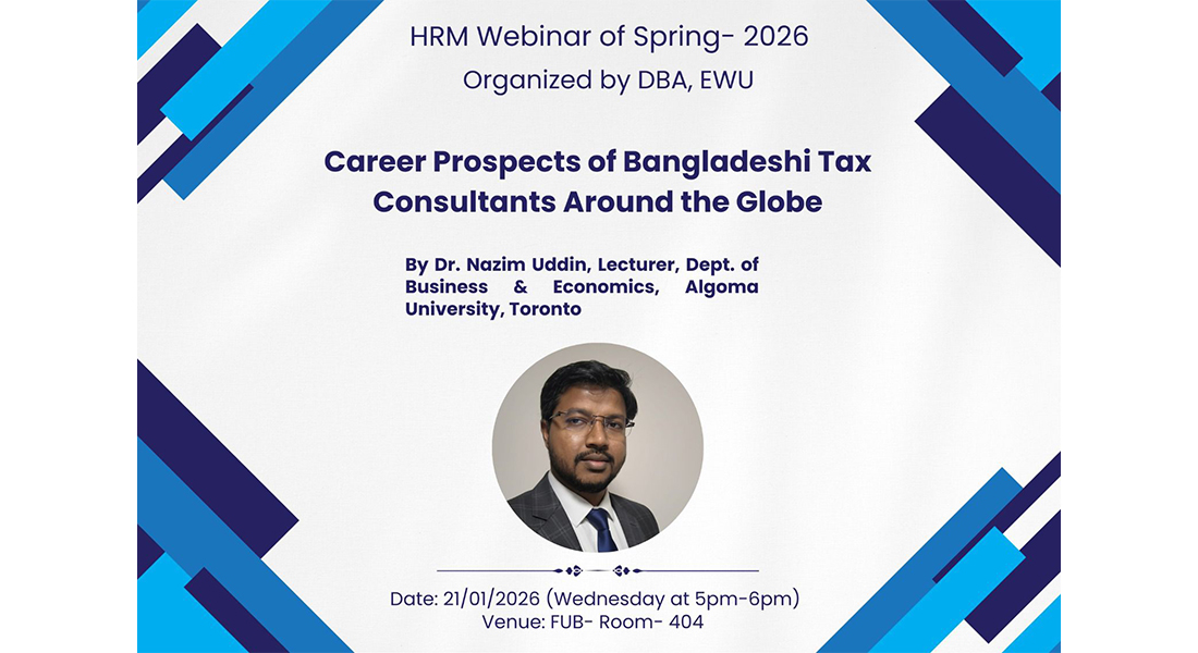The East West University Department of Business Administration recently organized a webinar titled, “Career Prospects of Bangladeshi Tax Consultants Around the Globe” on Wednesday, 21st January, 2026 at 5 PM through Google Meet at the university campus.
