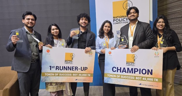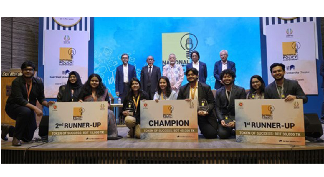 The National Policy Competition 2025 was a part of a statewide effort by the Ministry of Youth and Sports. The theme for East West University was "Bangladesh's Graduation from LDC Status: Preparing to Harness Opportunities and Overcome Emerging Challenges." The competition brought together smart undergraduate teams that demonstrated they knew how to read and understand policies, develop practical solutions, and argue confidently in public.
