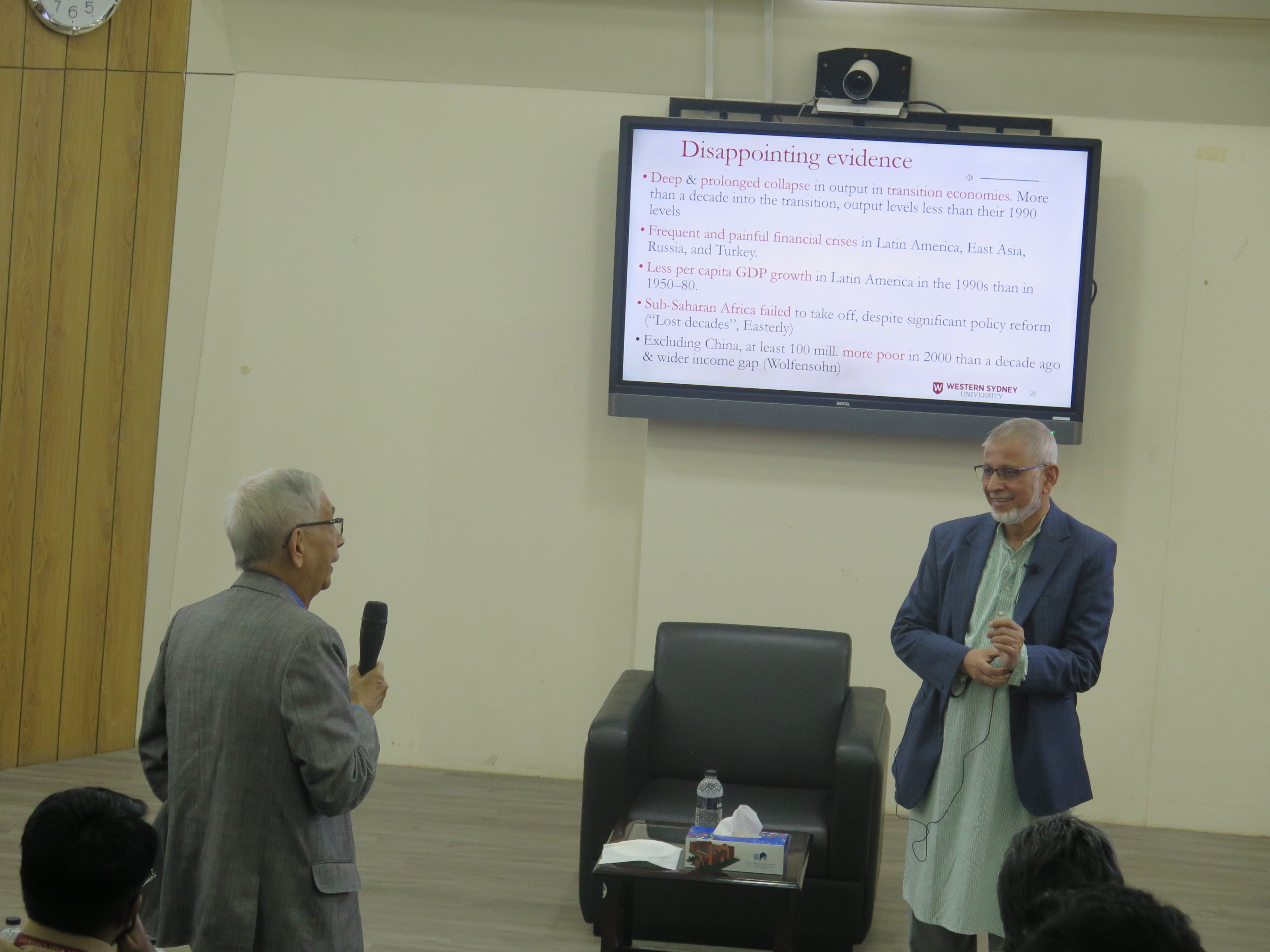 During an interactive question-and-answer session, Professor Chowdhury provided an important update on the national economy, highlighting that the current interim government of Bangladesh has successfully managed to control the inflation rate while maintaining a positive growth rate. This information served as a significant topic for discussion regarding the government's immediate economic management policies.